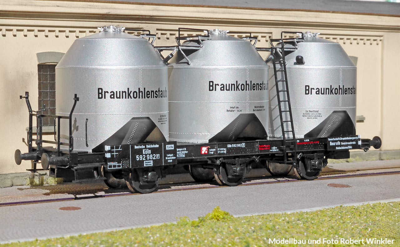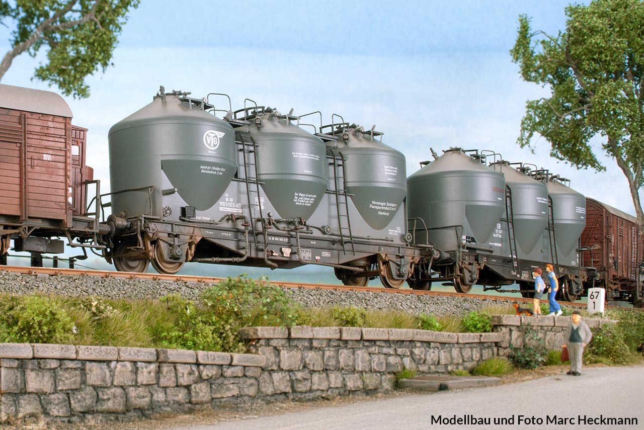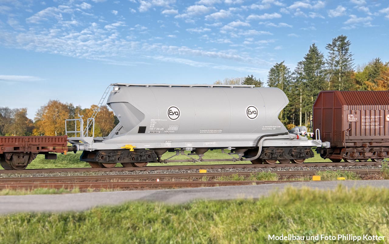 Und noch ein Wagen, dessen Nachbildung, so wie sie aus der Schachtel kommt, missglückt ist. Wer ihn im Bestand hat, findet in dem Buch Anregungen, wie daraus ein ansehnliches Modell werden kann. Vor dem Hintergrund, dass diese Wagen in der Epoche IV zu den wichtigsten privaten Staubgutwagen gehörten, lohnt sich der Aufwand – bestimmt nicht für einen Ganzzug, aber bei einem Einzelwagen durchaus.