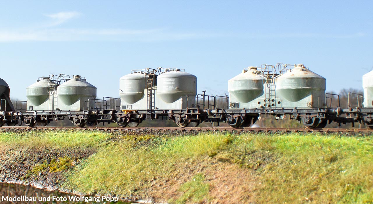 Ein Methusalem unter den Modellen sind die einst von Röwa entwickelten Wagen für Trevira-Chips. Trotzdem können sie als Ausgangsbasis für ansehnliche Nachbildungen herhalten, zumal es bestimmt keine Neuauflage dieser markanten Wagen geben wird.